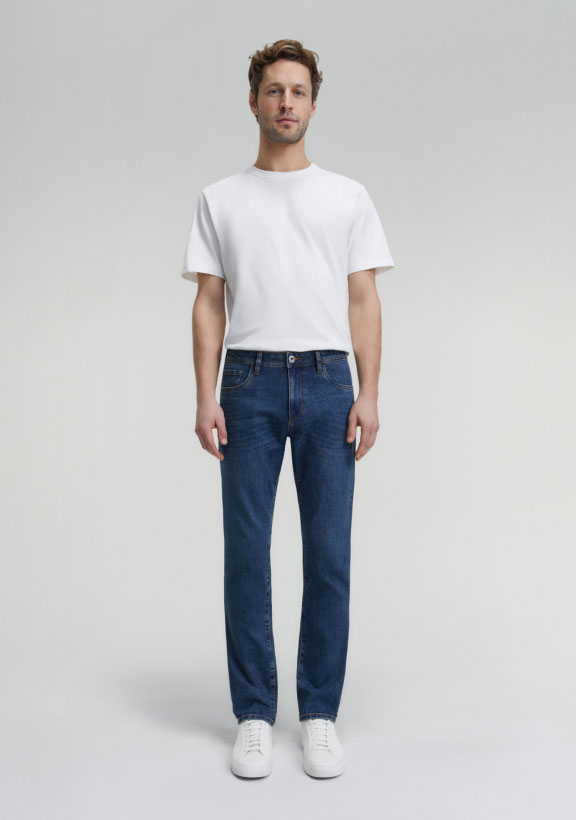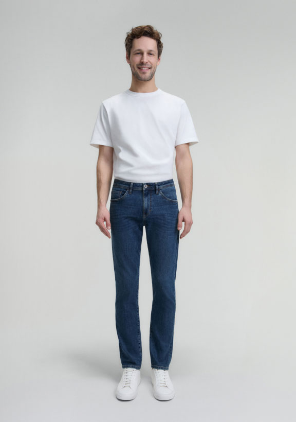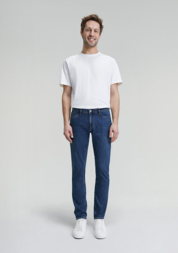 Körpernah geschnitten und bequem. Die vielseitigste Jeans.
